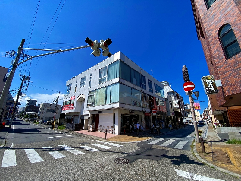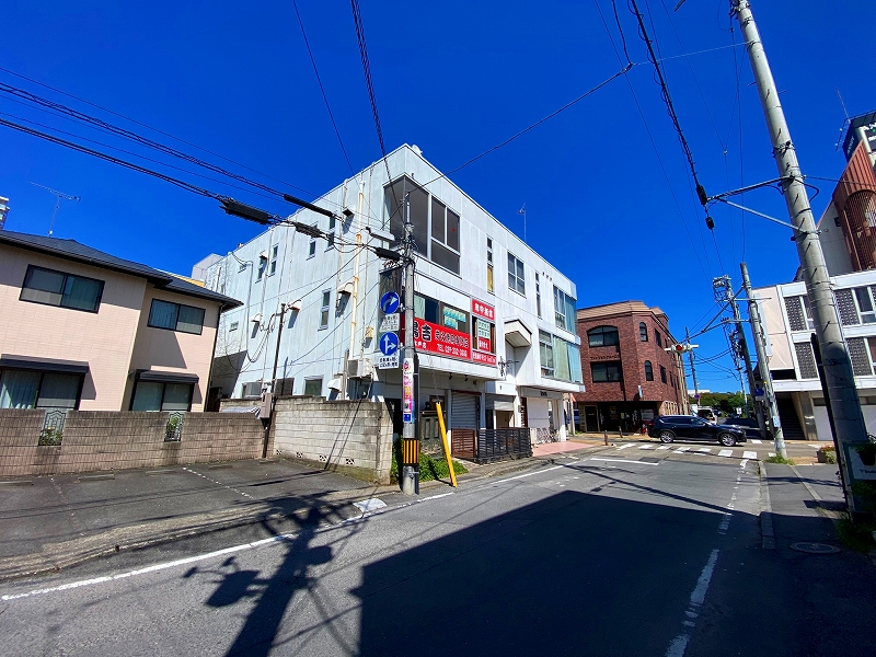 交差点角地目立つ、明るく開放感のある1F店舗事務所。